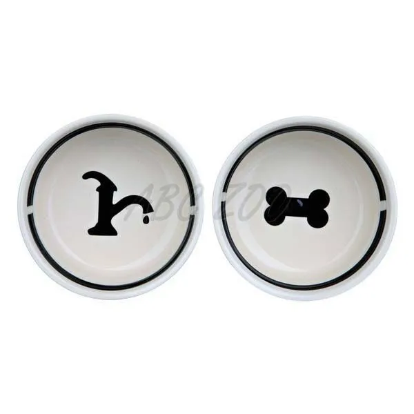 Castron bej din ceramică pentru câini cu suport de fier. Mai multe detalii