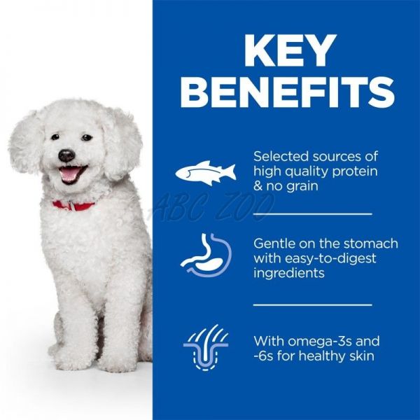 Hill's Science Plan Hypoallergenic cu Somon este o hrană completă cu un gust deosebit pentru câini adulți de talie mică și mini cu vârsta cuprinsă între 1 - 6 ani. Hrană uscată hipoalergenică concepută pentru câinii cu hipersensibilități, cu o cantitate limitată de noi surse de proteine de înaltă calitate și fără cereale.