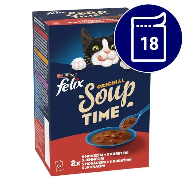 FELIX Soup Original cu carne de vită, cu pui, cu miel 18 x 48 g