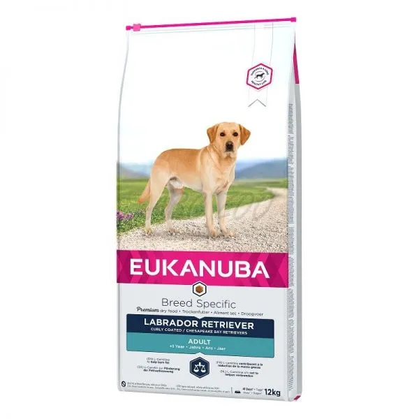 Eukanuba Labrador Retriever este  o hrană 100% completă și echilibrată pentru câinii adulți  Labrador retriever.Labrador retriver-ul este câine, care este favorizat pentru natura iubitoare și pașnică. Fără o mișcare suficientă, aceștia tind să devină supraponderali, iar această hrană este o alimentație potrivită și echilibrată pentru a menține greutatea corespunzătoare. În cazul unei solicitări fizice mai mari, vă recomandăm să o combinați cu mâncarea EUKANUBA Working and Endurance. Este, de asemenea, potrivită pentru alte rase cu aceleași cerințe nutriționale: retriever-ul cu blana creață, retriever -ul Chesapeake Bay.