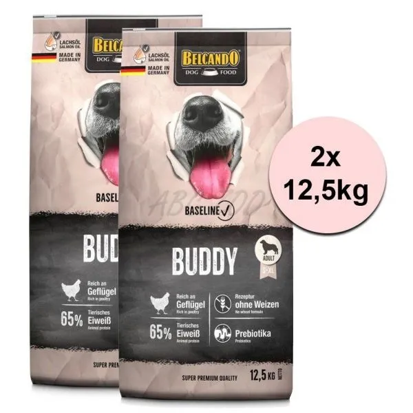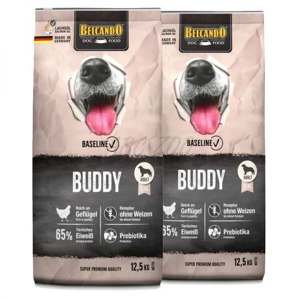 Hrană uscată echilibrată pentru câini adulți Belcando Baseline Buddy este bogată în carne de pasăre și îmbogățită cu ulei de somon valoros.
