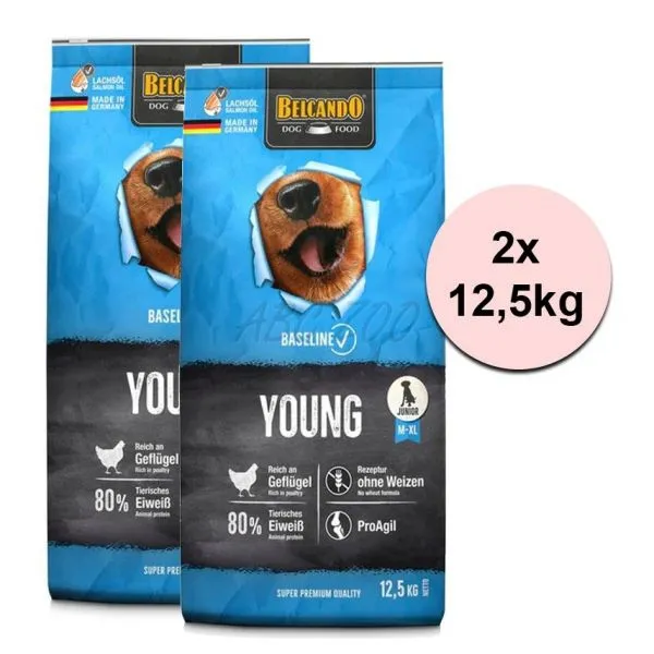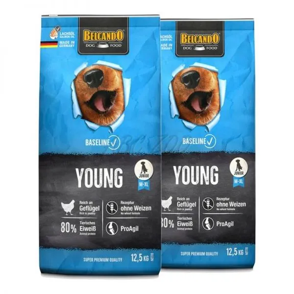 Hrană uscată echilibrată Belcando Baseline Young pentru câini tineri.