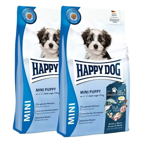 Happy Dog Mini Fit & Vital Puppy este o hrană optimă pentru cățelușii și câinii tineri de talie mică, de la 4 săptămâni până la 12 luni, cu greutatea adultă de până la 10 kg.