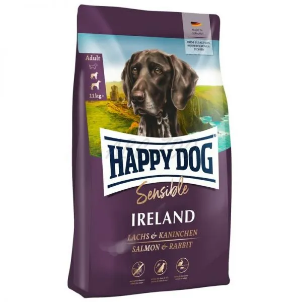 Happy Dog Sensible Ireland este o hrană perfect echilibrată pentru câinii adulți de toate rasele cu o greutate a adulților de peste 10 kg, care conține 5 surse de proteine de calitate superioară.