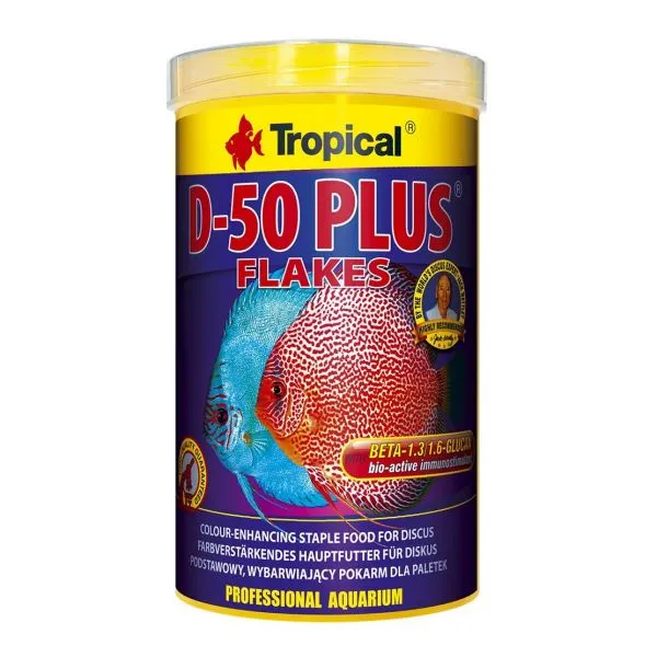 Hrană fulgi pentru peștii discus D-50 PLUS cu beta-glucan și astaxantină. Mai multe detalii