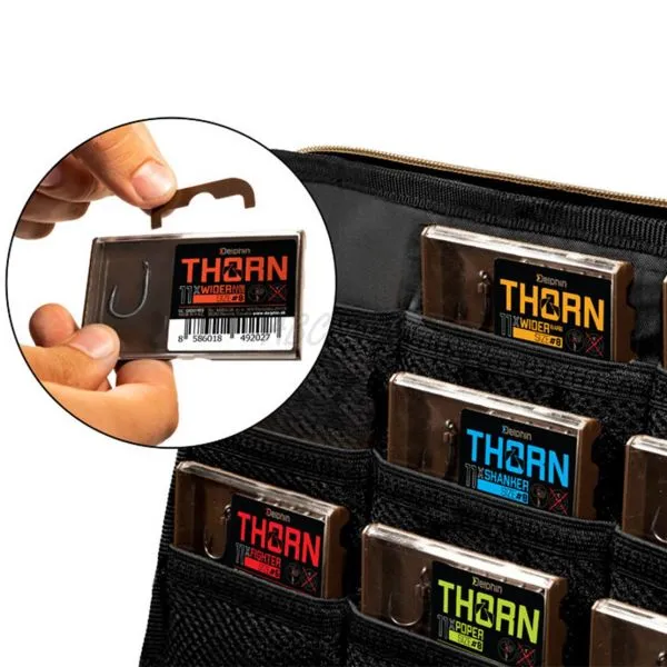 Cu ajutorul tehnologiei Ultrapoint 4.8 aplicate, a fost posibilă crearea unui vârf mai lung care oferă o ascuţime chiar incredibilă. Cârligele Delphin THORN sunt ambalate într-o cutiuţă practică, în care ascuţişul lor va fi tot timpul protejat. Suplimentar, cutia este prevăzută cu un ochet pentru agățarea în magazin, ochet care poate fi înlăturat cu ușurință fără a folosi scule ajutătoare, astfel încât să nu ocupe spațiu suplimentar în bagajul dumneavoastră.