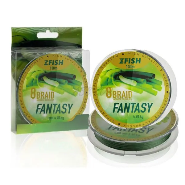 Zfish Fantasy 8-Braid este o sfoară împletită de înaltă calitate, rezistentă și perfect rotundă, realizată prin tehnologie japoneză folosind 8 fibre PE de înaltă calitate. Datorită celor 8 fibre, sfoara are o secțiune transversală rotundă, ceea ce reduce frecarea în inelele lansetei, alunecă mai ușor și astfel aruncările sunt mai precise și mai lungi. Tehnologia de împletire de ultimă generație asigură o rezistență ridicată la noduri și o durabilitate sporită la abraziune. Sfoara FANTASY nu absoarbe apă, păstrându-și proprietățile de aruncare și scufundare, taie bine apa, iar culoarea sa se estompează foarte lent.