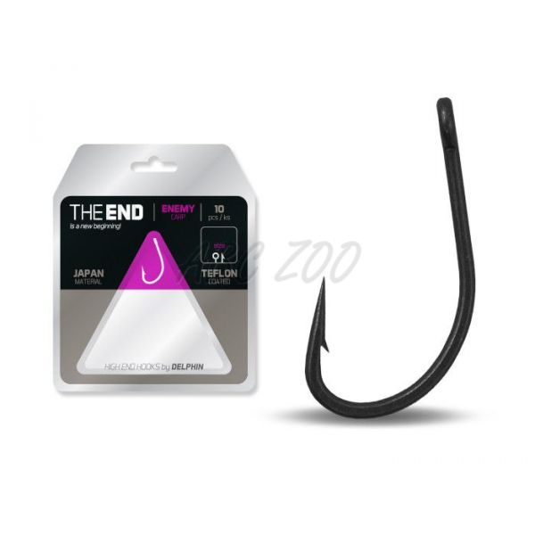 Seria excelentă de cârlige pentru crap de cea mai înaltă clasă poartă denumirea de THE END. Datorită formei sale sofisticate şi materialului japonez unic fiecare cârlig din această serie este sinonimul rezistenţei ultra ridicate şi ascuţimii celei mai ridicate posibile. Cârligul are un tratament de suprafaţă perfect mat cu un strat de teflon de înaltă rezistenţă. Ochiul cârligului calcă perfect până la refuz pe braţul cârligului iar în acest punct nu se găseşte nici un fel de spaţio şi nici o muchie ascuţită!Tipul ENEMY este prin forma sa predestinat pentru condiţiile cele mai extreme. Stăpâneşte perfect locurile de pescuit pline de obstacole şi curenţii puternici. Nu manifestă uzură nici la pescuitul pretenţios şi în caz de nevoie puteţi menţine peştele în locul ţintă fără nici un fel de probleme!Parametri tehnici:- cu ochi- cu contraspin- axial drept- secţiune: plată