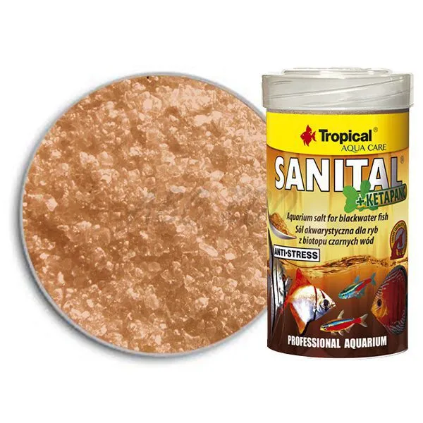 A fost creat pentru întreținerea apei din acavriu pentru peștii de apă neagră cum ar fi, scalarii, peștii discus, neon tetra etc., și peștii de apă sărată. Adăugarea de vitamina B1 ameliorează stresul, care este foarte important în cazul peștilor timizi cum ar fi characins. Taninurile si acidul humic din extractele de Ketapang și coajă de stejar conferă siguranță acvariului și asigură sănătate peștilor. Influența acestor substanțe este foarte importantă în cazul peștilor slăbiți în timpul unui transfer, datorită unei perioade de aclimatizare sau care suferă de escoriații ale pielii și au răni; sau după schimbări ale apei și acvarii cu risc toxic ridicat de nitriți. SANITAL PLUS KETAPANG îmbunătățește condițiile sanitare în acvariile obișnuite (cele vechi și cele noi), accelerează regenerarea epidermei, stratului de mucus și aripioarelor, prin urmare este în mod special recomandat în carantină pentru igiena acvariilor.