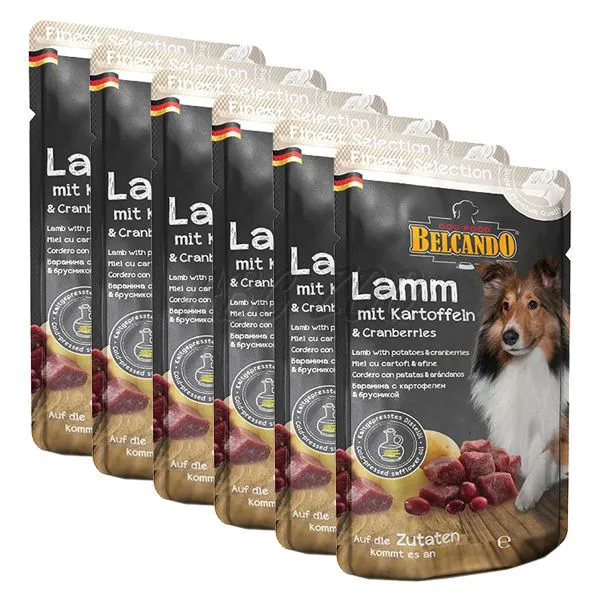 Plicuri BELCANDO pentru câini - cu carne de miel, cartofi și merișoare.  Mai multe detalii