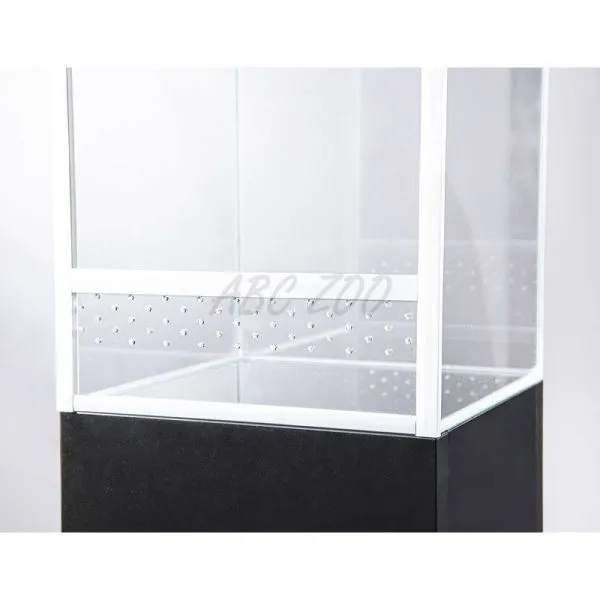 • Terariul are încorporată o dublă ventilație sub formă de perforații pentru a preveni apariția mucegaiului. Orificiile de aerisire în formă de hexagon sunt amplasate în partea din față și în partea superioară a acvariului.