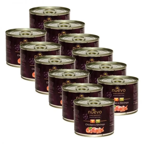 Conservă NUEVO CAT Adult Chicken & Shrimps 12 x 200 g