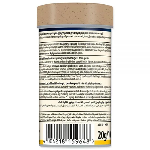 Hrană completă pentru peștii ornamentali tineri.