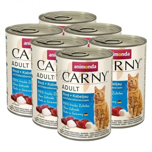 Conservă de carne pentru pisicile adulte ANIMONDA CARNY, cu carne de vită, peşte şi pătrunjel. Mai multe detalii