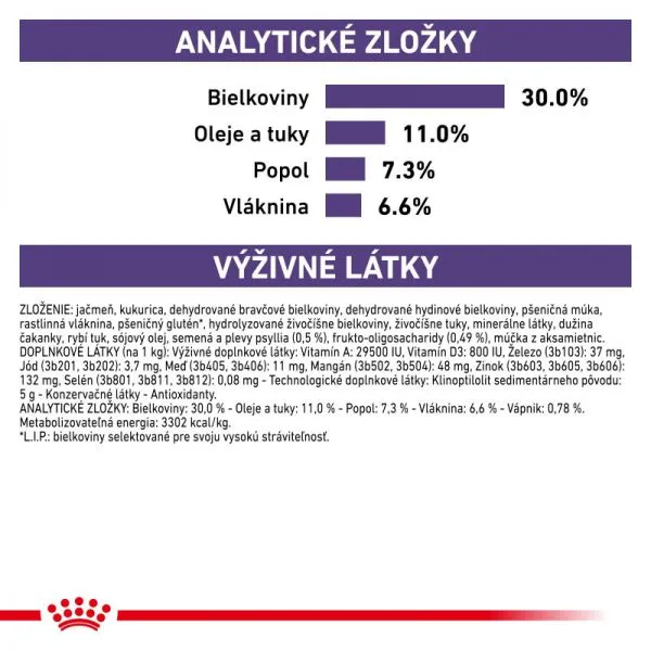 Ca parte a gamei veterinare ROYAL CANIN®, este important ca acest produs să fie administrat animalului dumneavoastră de companie numai la recomandarea unui medic veterinar. Tranziția animalului dvs. de companie de la o dietă la alta trebuie să fie un proces lin și treptat, pe parcursul a 7-10 zile. Asigurați-vă că respectați cantitatea corectă, în special în cazul alimentației mixte.