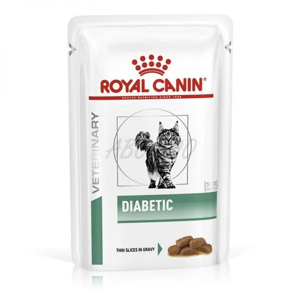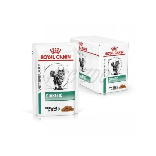 ROYAL CANIN® Diabetic felii subțiri în sos este o hrană dietetică completă pentru pisici care reglează aportul de glucoză (diabet zaharat).