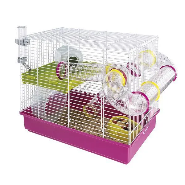 Cuşcă pentru hamsteri cu accesorii: casută, carusel, castron, adăpător, tunel, etaj.   Mai multe detalii