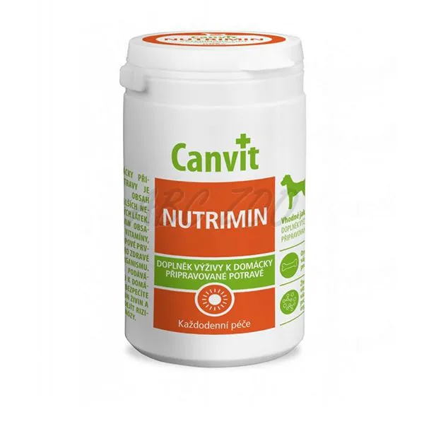 Riscul alimentelor preparate acasă este conținutul dezechilibrat al vitaminelor și al altor substanțe importante. Canvit Nutrimin cuprinde toate vitaminele, mineralele și oligoelementele necesare funcționării sănătoase a organismului. Conținutul de calciu și fosfor este important pentru scheletul puternic. Prin adăugarea Canvit Nutrimin la alimentele preparate în casă , asigurați câinelui dvs. o alimentare sigură a nutrienților și preveniți hipovitaminoza.