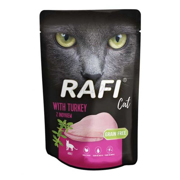 Ingrediente: carne și produse de origine animală 65% (curcan 4%), uleiuri și grăsimi (ulei de in 0,6%, ulei de somon 0,5%), minerale, cimbru uscat 0,01%.