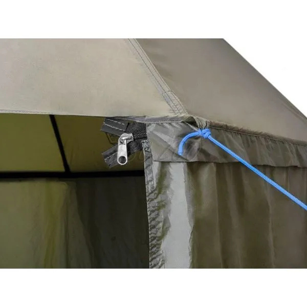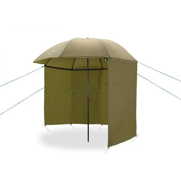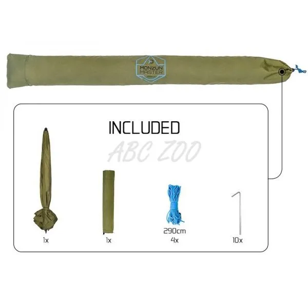 Umbrela premium Delphin MONZUN Master cu perete lateral care acoperă 3/4 din diametrul acesteia, este adăpostul perfect atunci când vremea devine mai puțin plăcută. Aceasta vă va proteja de soarele puternic, de roua dimineții și chiar de ploile torențiale de vară. Pentru situațiile cu vânt puternic, umbrela este dotată cu patru cordeline pentru un plus de stabilitate. Aceste cordeline sunt de culoare albastru deschis pentru a le vedea mai bine și pentru a nu vă împiedica de ele în condiții de vizibilitate scăzută. Cusăturile umbrelei sunt izolate pentru a oferi impermeabilitate 100% împotriva umezelii sau a ploilor torențiale. Umbrela dispune de un perete lateral detașabil printr-un fermoar de foarte bună calitate.Peretele acoperă 3/4 din diametrul umbrelei, iar în partea de jos se ancorează în pământ cu ajutorul a 10 cuie. Fermoarul pentru peretele lateral este acoperit pentru a preveni umezeala să pătrundă la interior. Umbrela este ajustabilă pe înălțime, așadar poate fi montată pe teren accidentat și reglată după înălțimea dumneavoastră. Delphin MONZUN este o umbrelă premium, care pe lângă pescuit, se pretează a fi folosită cu orice ocazie.