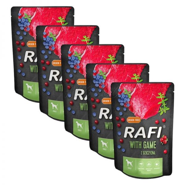 Ingrediente: carne și produse de origine animală 65% (carne de vânat 4%), fructe (afine 2%, merișoare 2%), minerale, uleiuri și grăsimi (ulei de in 0,2%), cimbru uscat 0,01%.
