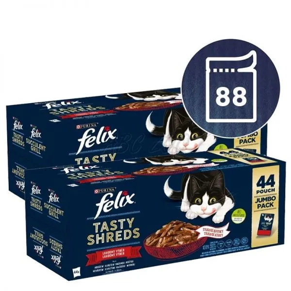 FELIX TASTY SHREDS Multipachet - cu carne de pui/beculet/pachet/cartofi în suc 88 x 80 g