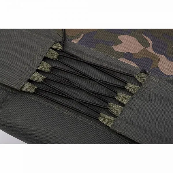 Salteaua are un material verde impermeabil 600D, iar marginile sunt decorate cu un stilat model de camuflaj Avenger. Cadru pliabil dublu este extrem de compact, ceea ce permite o transportare ușoară și lasă majoritatea sacilor de dormit pe lehăt.