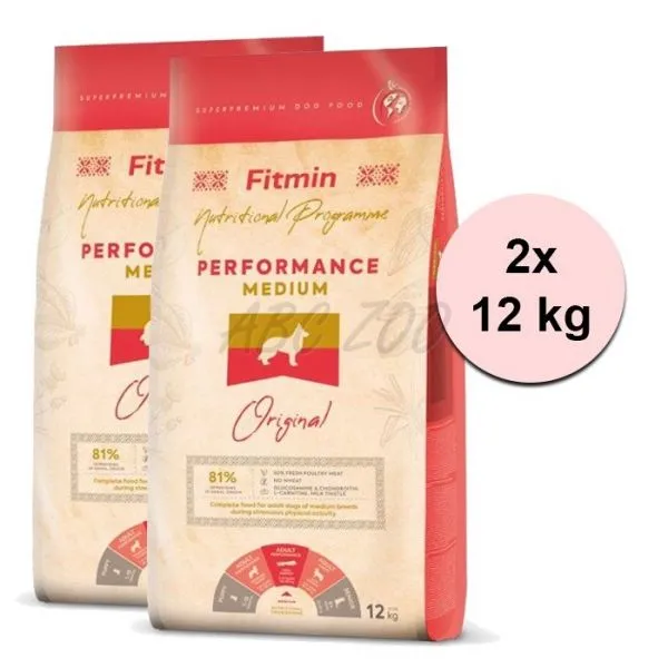 Fitmin Medium Performance este o hrană cu un conținut crescut de energie pentru câini adulți foarte activi din rase medii.