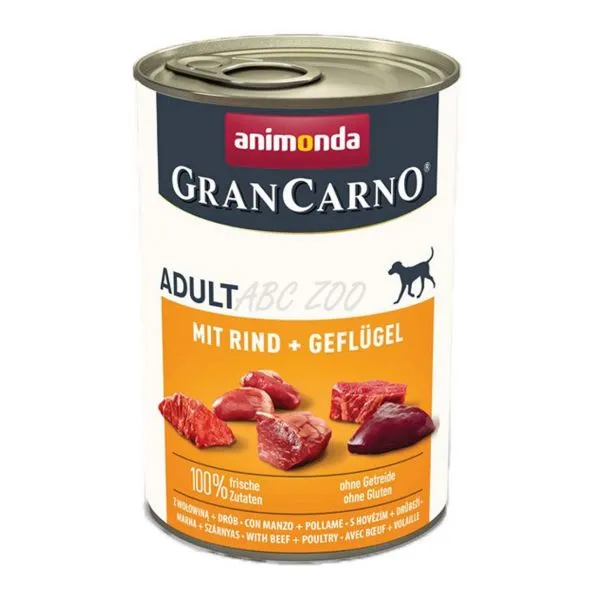 Animonda GranCarno Original este o conservă completă pentru câini adulți (de la 1 an), preparată exclusiv din carne proaspătă de vită și pasăre.