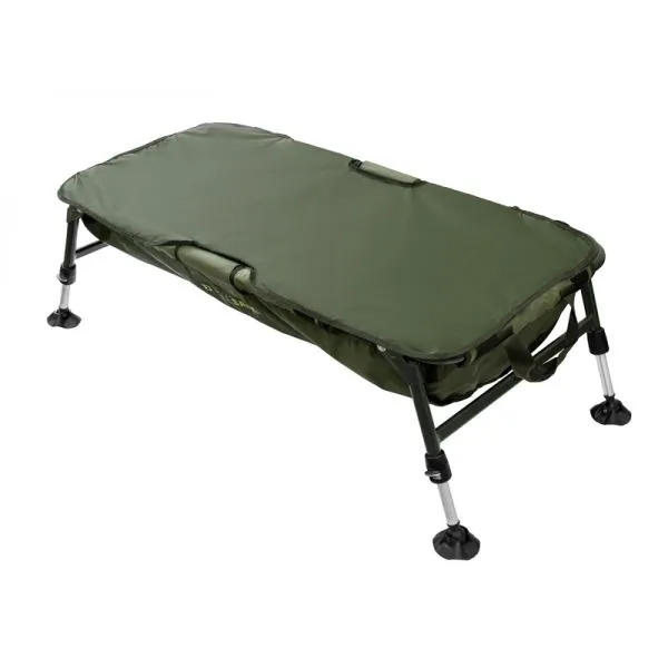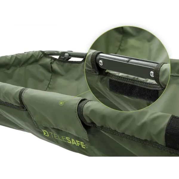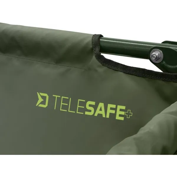 Bata pentru Delphin TeleSAFE+ a devenit salteaua de primire EAZYSAFE foarte îndrăgită de pescari. Dar la acest model am îmbunătăţit prin două modificări substanţiale confortul utilizării sale. Prima modificare constă în picioare reglabile telescopic care permit în acest caz montarea saltelei de primire şi pe un teren neuniform sau cu pietre, fapt datorită căruia va avea o stabilitate excelentă în orice fel de împrejurări. Al doilea bonus constă în acoperirea articulaţiilor din partea centrală a construcţiei, ceea ce minimalizează substanţial posibilitatea de afectare a capturii sau accidentarea pescarului. Baza saltelei de primire TeleSAFE+ o constituie o construcţie solidă din fier cu diametrul ţevilor de 22 mm. Materialul cu suprafaţa cauciucată utilizat are de asemenea câteva avantaje. După terminarea pescuitului este suficientă ştergerea sa până la uscare şi în acest fel nu este necesară o aşteptare lungă până la uscare. În plus, se spală foarte uşor şi nu absoarbe în ea mirosuri neplăcute care se pot răspândi în autovehiculul dumneavoastră în timpul transportului. Întreaga saltea este foarte solidă iar la testele extreme a rezistat fără probleme la susţinerea greutăţii statice de până la 75 kg! Pe ambele margini este cusut material din plasă prin care se scurge uşor apa din interior. TeleSAFE+ dispune şi de material pentru acoperire care este prevăzut cu scai. În acest fel puteţi să închideţi peştele, până când, de exemplu, trebuie să pregătiţi aparatul foto, eventual să mergeţi să luaţi apă pentru udarea capturii. Picioarele telescopice sunt prevăzute cu tălpi cu articulaţii care se adaptează la teren şi împiedică scufundarea în sol, eventual un strat suport mai moale. Dar la proiectare ne-am gândit şi la transport, ceea ce este o altă parte forte a acestui produs. La mijloc construcţia este divizată ingenios şi în felul acesta este suficientă plierea simplă la jumătate şi transportarea comodă cu ajutorul mânerelor.