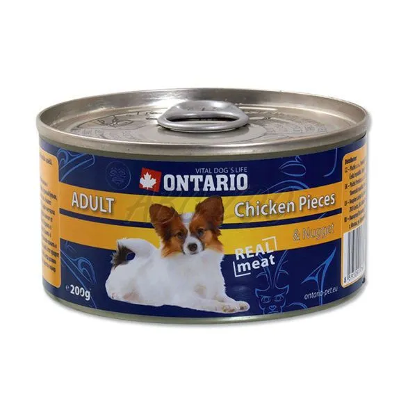 Conservă ONTARIO pentru câinii adulți, Bucăți de Pui + Nugget, 200g