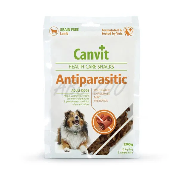 Canvit Health Care Antiparasitic Snack este o gustare funcțională destinată câinilor adulți pentru controlul microflorei intestinale - 200g.