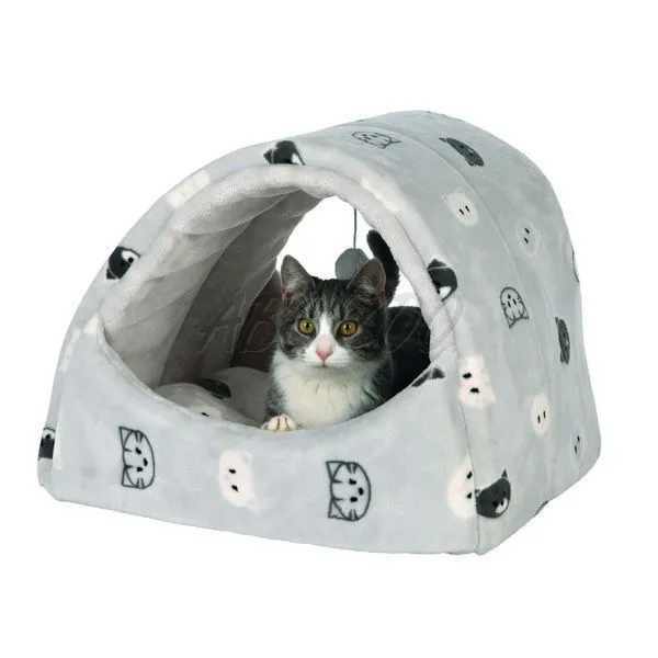 Culcuș pentru pisici, culoare gri, cu modele de pisici. Mai multe detalii
