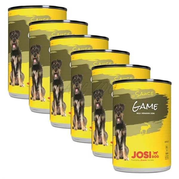 JOSIDOG Game In Sauce conține bucăți fragede în suc cu carne de vânat pentru câini adulți de toate rasele.