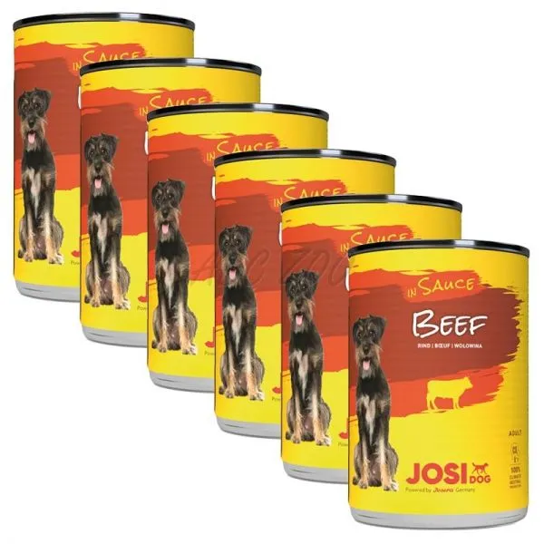 JOSIDOG Beef In Sauce conține bucăți fragede în suc cu carne de vită pentru câini adulți de toate rasele.