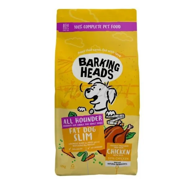 Barking Heads All Hounder Fat Dog Slim este o hrană uscată dietetică cu pui pentru câini adulți de toate rasele.