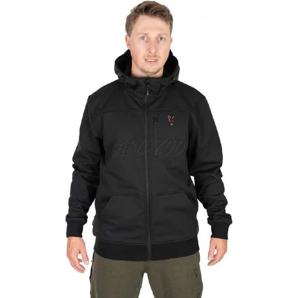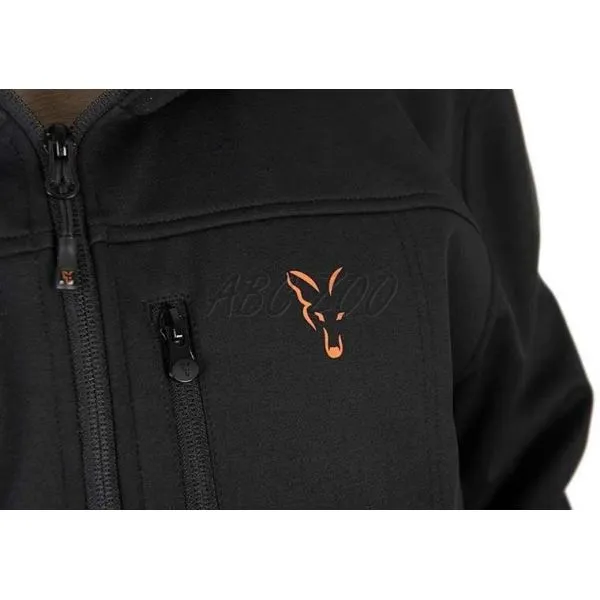 Jachetă neagră soft shell cu logo-ul Fox portocaliu.   Mai multe detalii