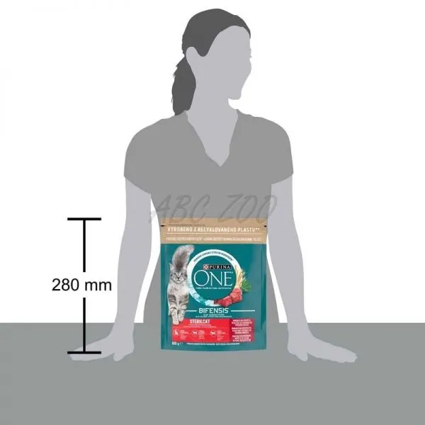 Purina ONE Sterilcat este o hrană completă cu carne de vită pentru pisici adulte sterilizate.