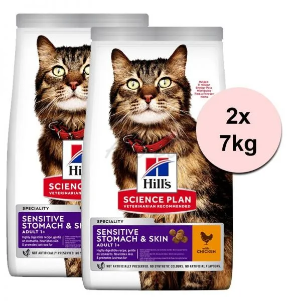 Hill's Science Plan Feline Adult Sensitive Stomach & Skin Chicken 2 x 7kg