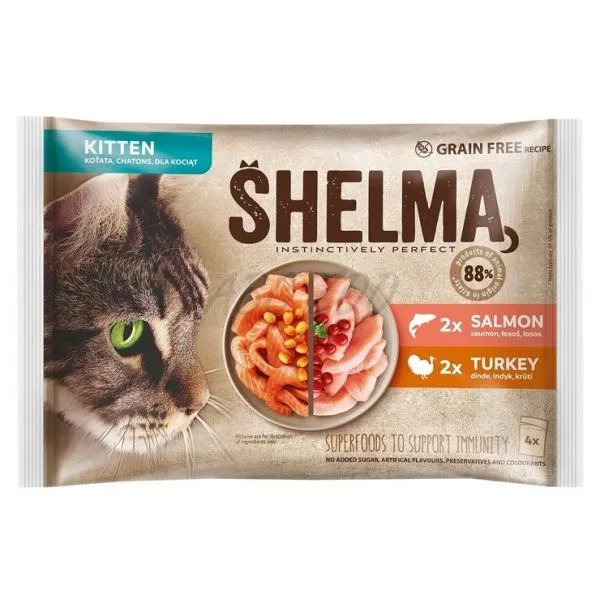 Shelma Kitten somon/curcan în sos 4 x 85 g