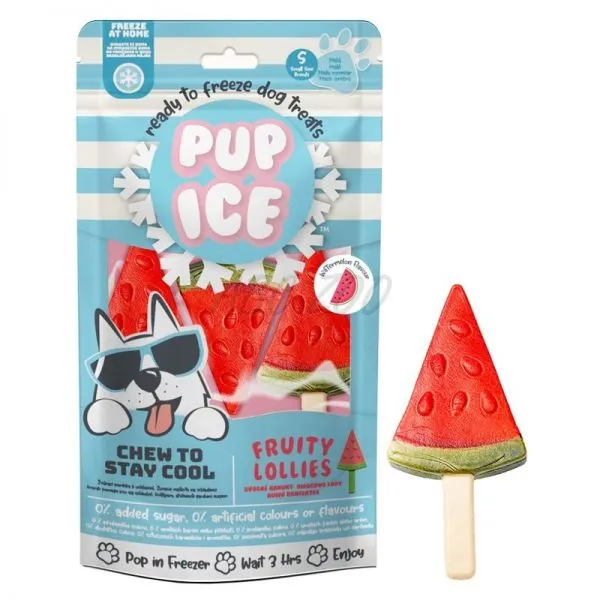 Pup Ice este o recompensă solidă pe care o puteți avea congelată acasă. Nu trebuie să vă faceți griji cu privire la mizerie, vărsare sau picurare. Produsul a fost formulat astfel încât limba câinelui să nu se lipească de produs, așa cum s-ar întâmpla în cazul unei dulciuri congelate obișnuite. Recompensele au calciu și prebiotice adăugate pentru beneficii suplimentare pentru sănătate.