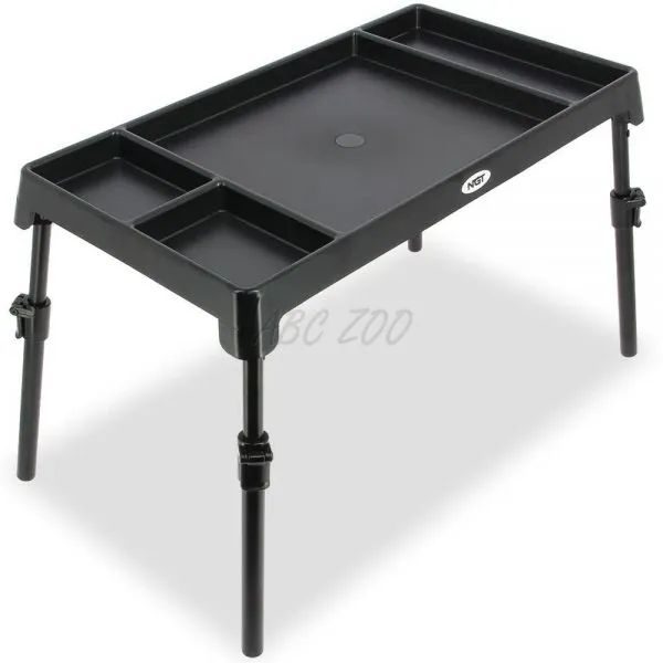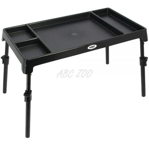 NGT XPR Bivvy Table este o masă din plastic nouă, foarte practică, destinată utilizării în cort, special concepută pentru pregătirea monturilor și a forfacurilor. Divizarea înseamnă că suprafața de lucru este împărțită în 4 compartimente de dimensiuni diferite pentru organizarea accesoriilor și a articolelor necesare pentru legături. Marginea înaltă din jurul întregii mese previne pierderea sau rostogolirea obiectelor mici. Bineînțeles, este echipată cu picioare telescopice reglabile pe înălțime, între 29 și 40 cm.