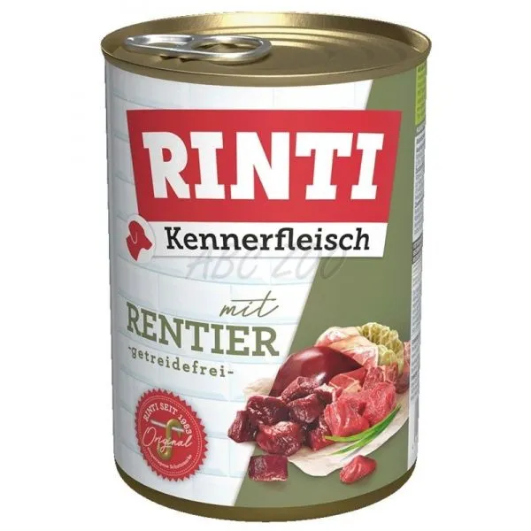 Hrana conservată RINTI este o hrană completă pentru câini adulți, bogată în bucăți naturale de carne.