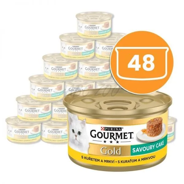 Conservă Gourmet GOLD - Tort savuros cu carne de pui și morcovi 48 x 85g