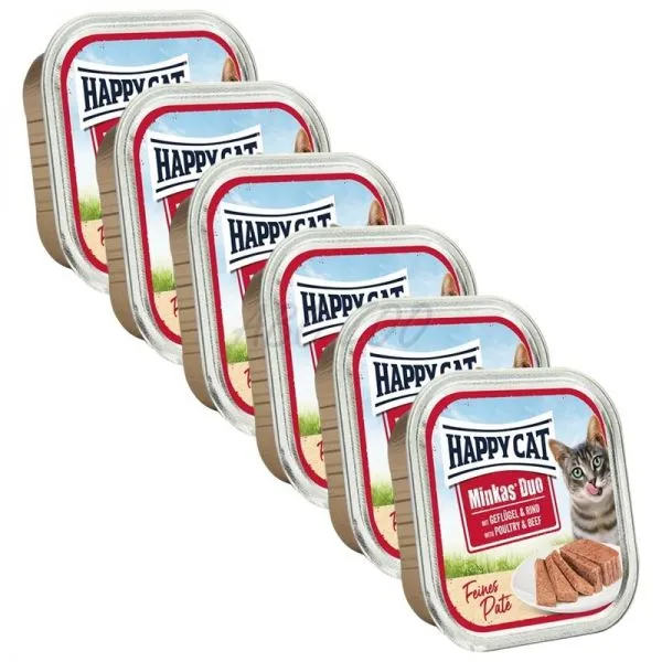 Happy Cat Duo Paté hrană umedă oferă pisicii dvs. două tipuri de carne pentru a satisface chiar și cele mai pretențioase gusturi.