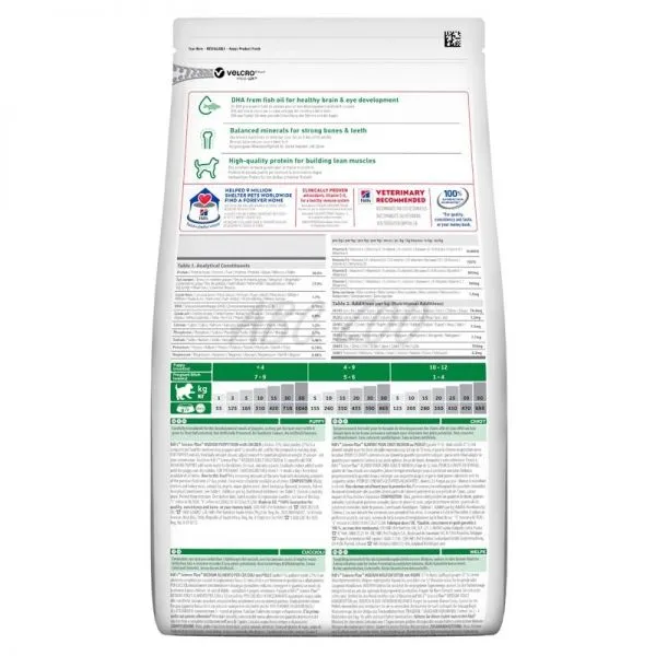 Hrană uscată cu carne de pui cu ingrediente şi minerale precis echilibrate pentru dezvoltarea creierului şi ochilor. Conţine ADH din ulei de peşte şi proteine de calitate pentru dezvoltarea musculaturii fibrate.