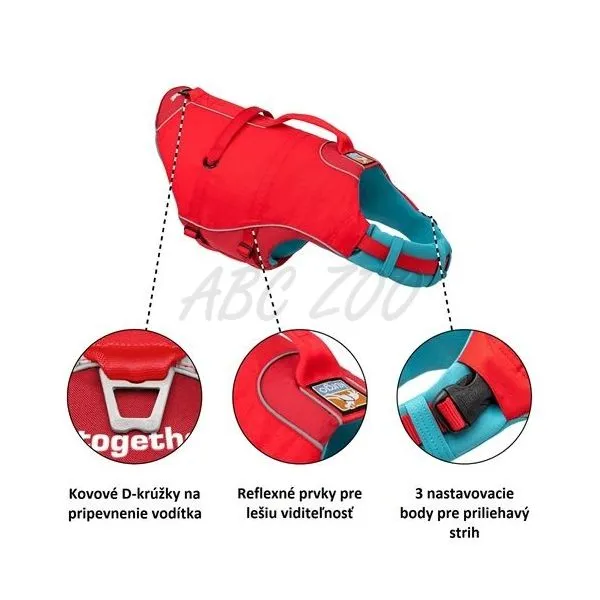 Kurgo Surf N Turf Dog Life Jacket Vesta de înot pentru câini, M roșu
