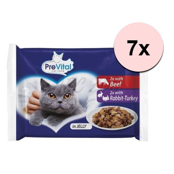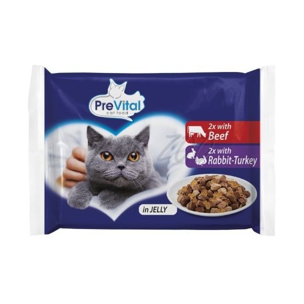 PreVital Cat carne de vită/iepure-curcan în jeleu 4 x 100 g