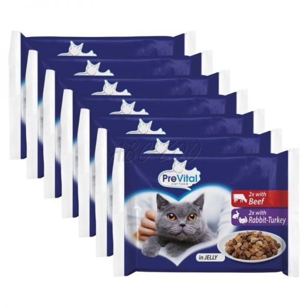 PreVital Cat carne de vită/iepure-curcan în jeleu 28 x 100 g