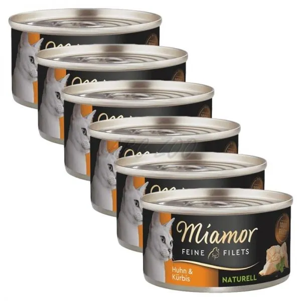 Miamor Feine Filets Naturell conține numai bucăți ușoare de fileuri de pui în suc propriu cu dovleac, atât pentru pisici adulte, cât și pentru cele în vârstă.